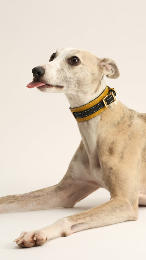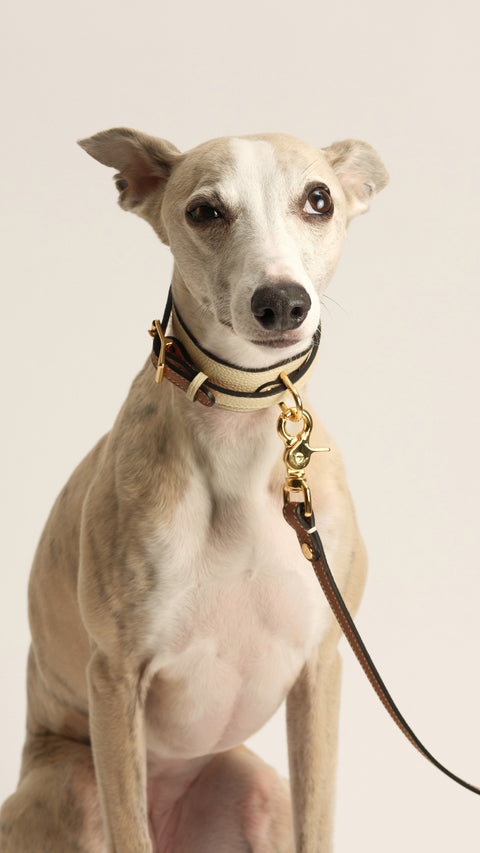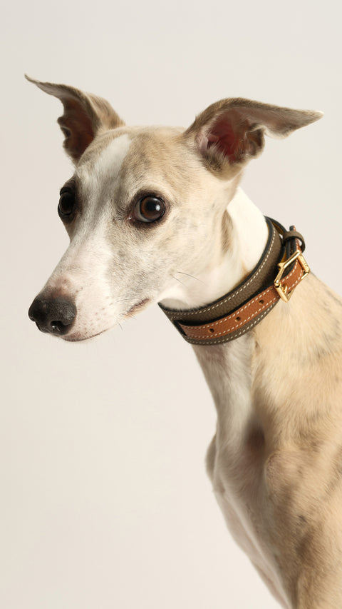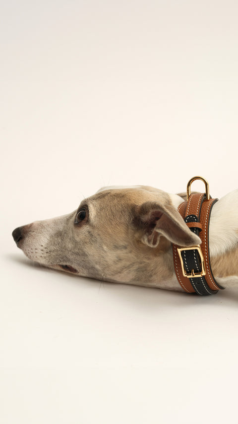 Crafted from premium full-grain calf skin & lined with soft calf suede, the Double Loop collar offers exceptional comfort. The subtle contrast stitching along the edge adds durability and a touch of style.